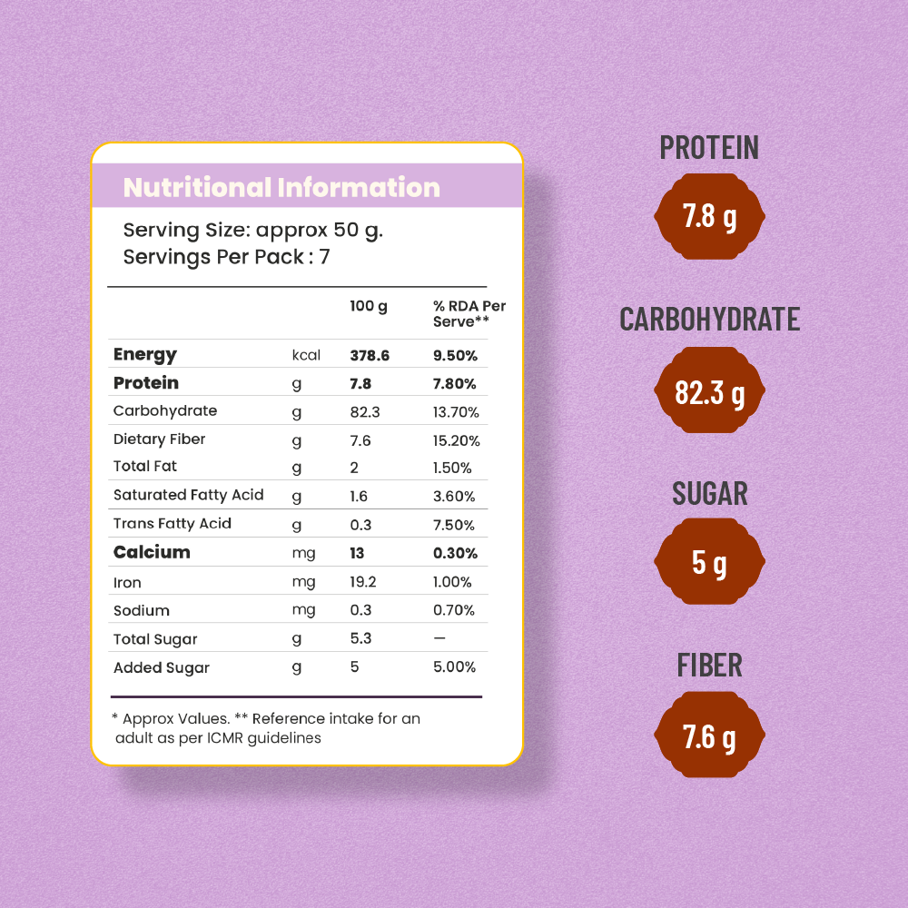(Fibre: 7.6g | Protein: 7.8g | Total Millet Content: 35%)