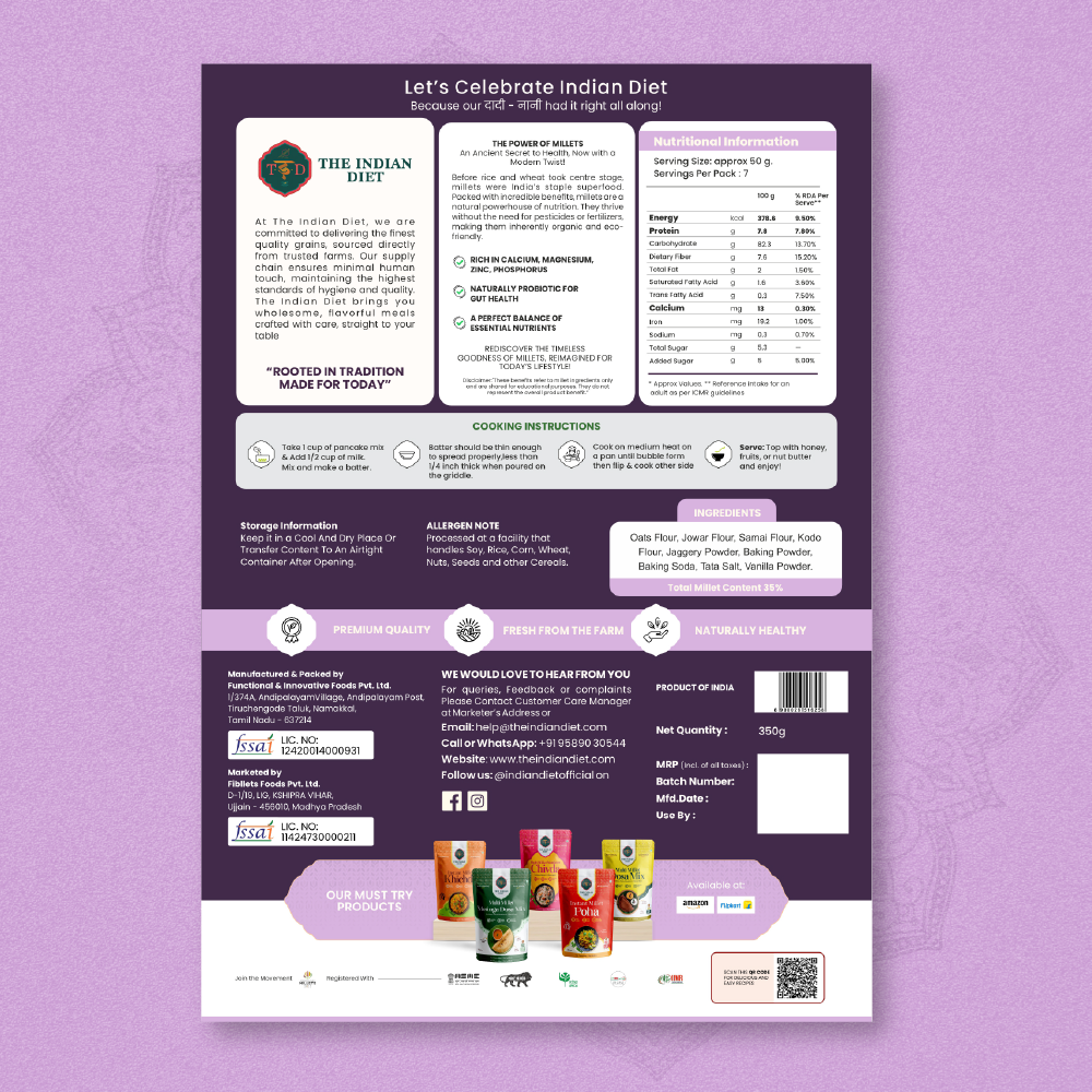 The Indian Diet Vanilla Pancake Mix with Millets | Made with Millets & Cocoa | No Preservatives or Additives | No Junk Just Goodness